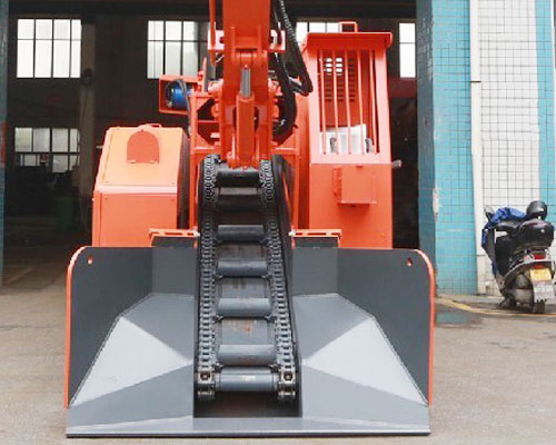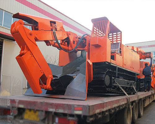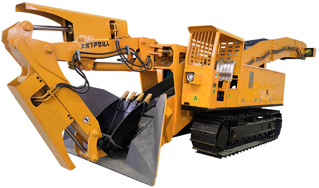 主要動作采用先導閥控製,操作輕鬆簡便,舒適,機動靈活,爬坡能力強,工作平穩無衝擊。可以利用工作臂實現掌子麵排險,全斷麵裝岩,不留死角,不需人工清理工作麵。